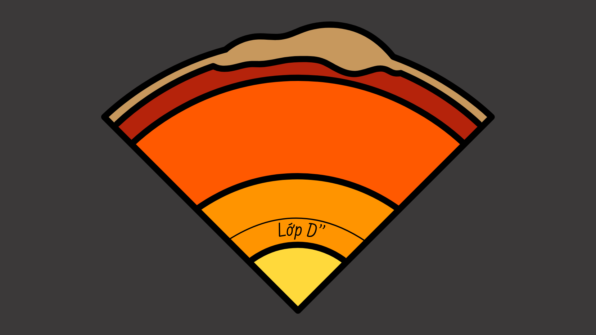 Bên dưới lớp phủ, ngành địa chấn học đã cung cấp rất nhiều các bằng chứng thuyết phục cho thấy ranh giới giữa lớp phủ và vùng lõi là một khu vực đặc biệt phức tạp, khác hẳn so với vùng chuyển tiếp bên trong lớp phủ. Ban đầu, người ta kỳ vọng rằng, về mặt lý thuyết, sự tương phản rất lớn trong mật độ giữa lớp phủ silicat và lõi kim loại sẽ tạo một ranh giới vô cùng sắc nét giống như ranh giới giữa không khí và nước, từ đó tạo ra một tín hiệu địa chấn rất mạnh từ sâu bên trong Trái Đất. Tuy nhiên, các tín hiệu địa chấn phản xạ khỏi ranh giới giữa vùng lõi và lớp phủ thường rất lộn xộn, bị nhòe và bị vỡ rất nhiều. Điều này có nghĩa là phải có một cấu trúc ẩn nào đó ở bên dưới. Các nhà khoa học gọi vùng hỗn độn sần sùi này là lớp D’’
