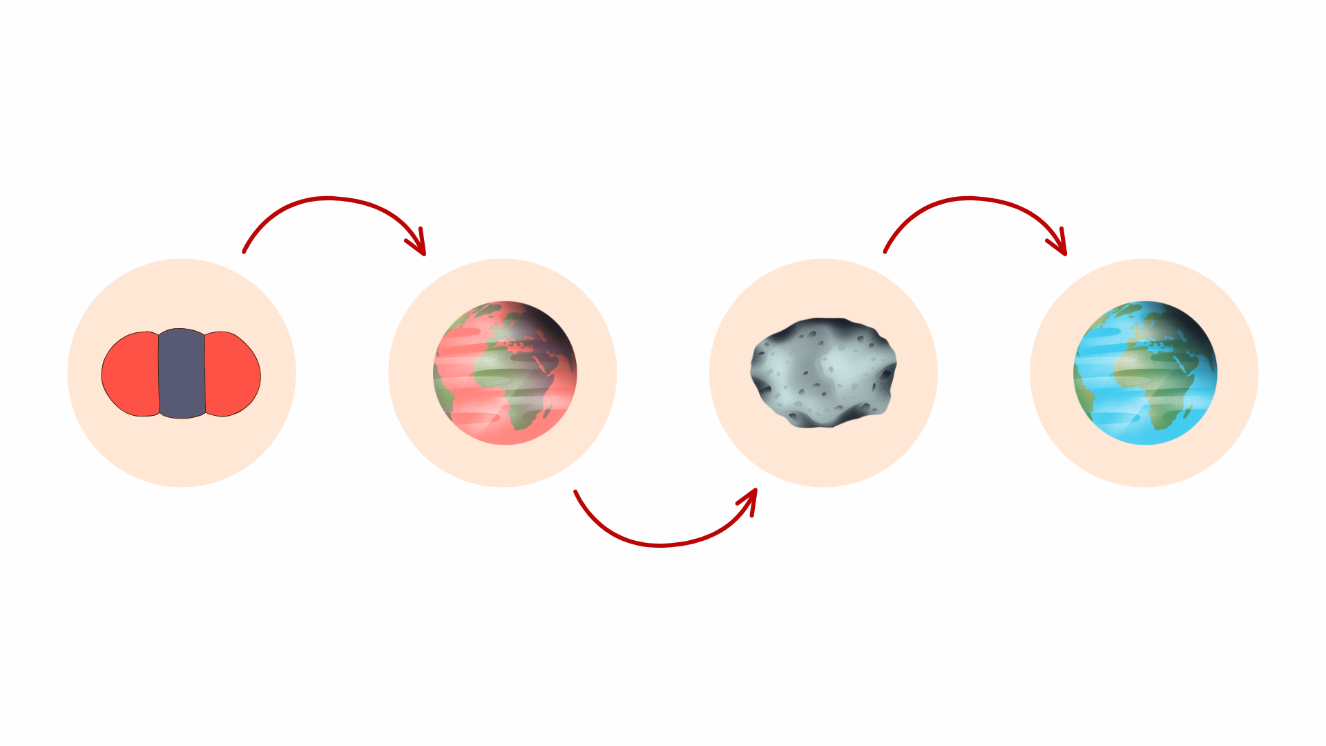 Và cứ thế, trong vòng 150 triệu năm tiếp theo, Trái Đất liên tục di chuyển giữa hai thái cực này, không phải một lần, không phải hai lần, mà ít nhất là ba lần khí hậu toàn cầu đã dao động dữ dội đến như vậy. Kỷ băng hà đầu tiên được đặt tên là Sturtian, đạt đỉnh điểm khoảng 720 triệu năm trước. Kỷ băng hà Marinoan tiếp theo đạt đỉnh vào khoảng 650 triệu năm trước và kỷ băng hà Gaskiers ít khắc nghiệt hơn xảy ra vào khoảng 580 triệu năm trước.