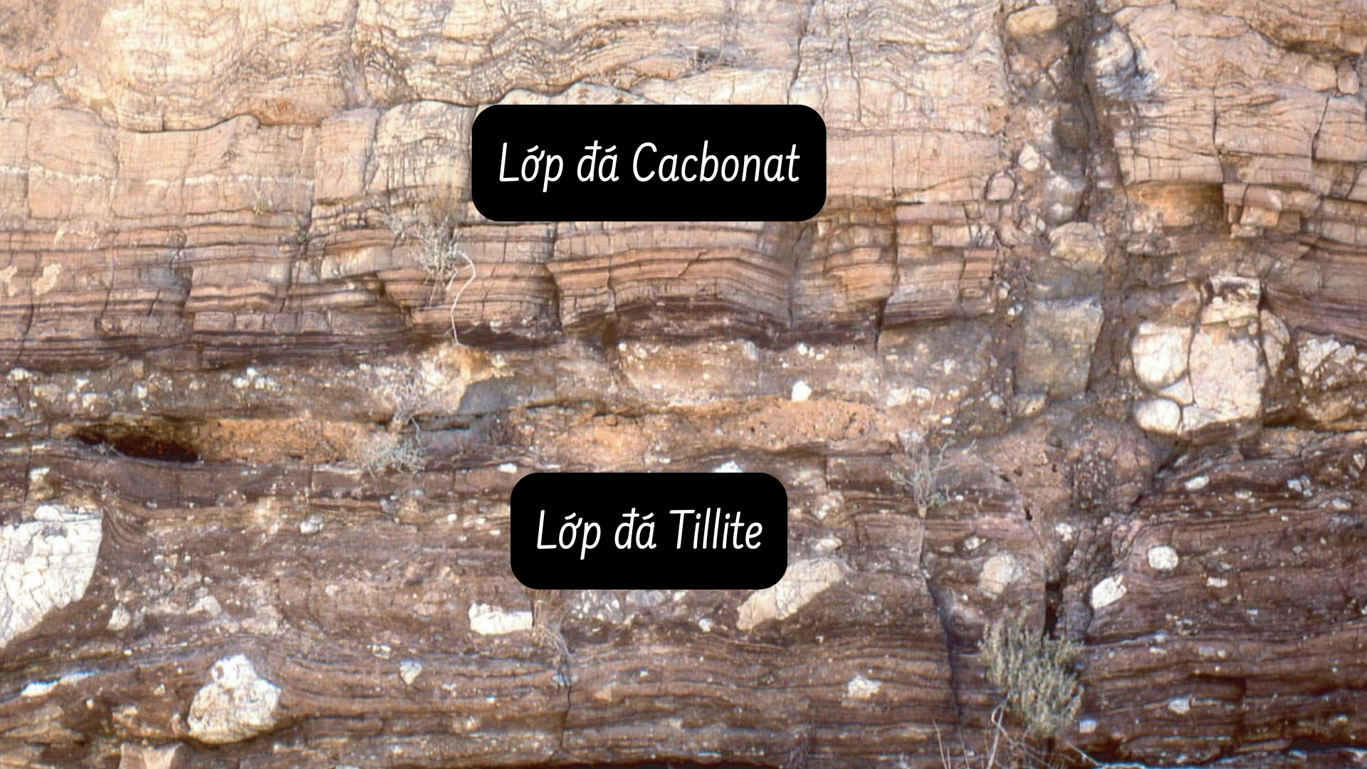 Các sông băng đã “ghi lại” các sự kiện này một cách rất rõ ràng. Tại đây, bằng chứng quan trọng nhất chính là các lớp trầm tích có tên là tillite – một mớ hỗn độn bao gồm các hạt thạch anh, feldspar góc cạnh trộn lẫn với bột đá mịn – là dấu hiệu chính cho chúng ta biết rằng, Trái Đất đã trải qua một thời kỳ băng hà trong quá khứ.