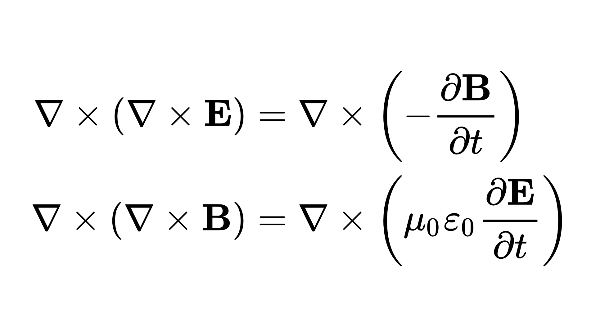 Bước đầu tiên chúng ta sẽ lấy độ xoáy ở cả hai vế ở định luật Faraday và định luật Ampère-Maxwell: