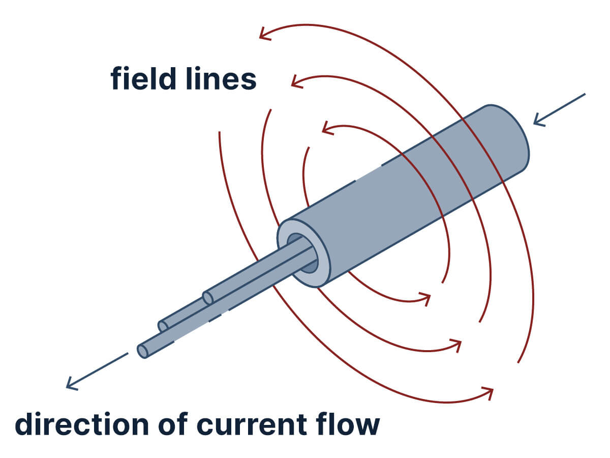 Cách thứ nhất: J được gọi là mật độ dòng điện – tức là một dòng các điện tích đang di chuyển (đơn vị là Ampe) – sẽ tạo ra một từ trường xoáy quay quanh dòng điện này. Bạn có thể sẽ nhớ đến quy tắc nắm tay phải