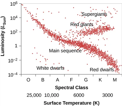 Và để hiểu rõ hơn về các giai đoạn tiếp theo của một ngôi sao, có một biểu đồ rất hữu ích mà chúng ta cần phải xét đến. Năm 1913, nhà thiên văn học người Mỹ Henry Norris Russell đã vẽ một biểu đồ nhằm biểu thị mối quan hệ giữa độ sáng của các ngôi sao so với nhiệt độ bề mặt của chúng. Nghiên cứu này, cùng với một nghiên cứu độc lập tương tự vào năm 1911 của nhà thiên văn học người Đan Mạch Ejnar Hertzsprung, đã dẫn đến những khám phá cực kỳ quan trọng rằng nhiệt độ và độ sáng của các ngôi sao có mối liên hệ mật thiết với nhau và được thể hiện trong biểu đồ Hertzsprung–Russell, viết tắt là biểu đồ H–R.