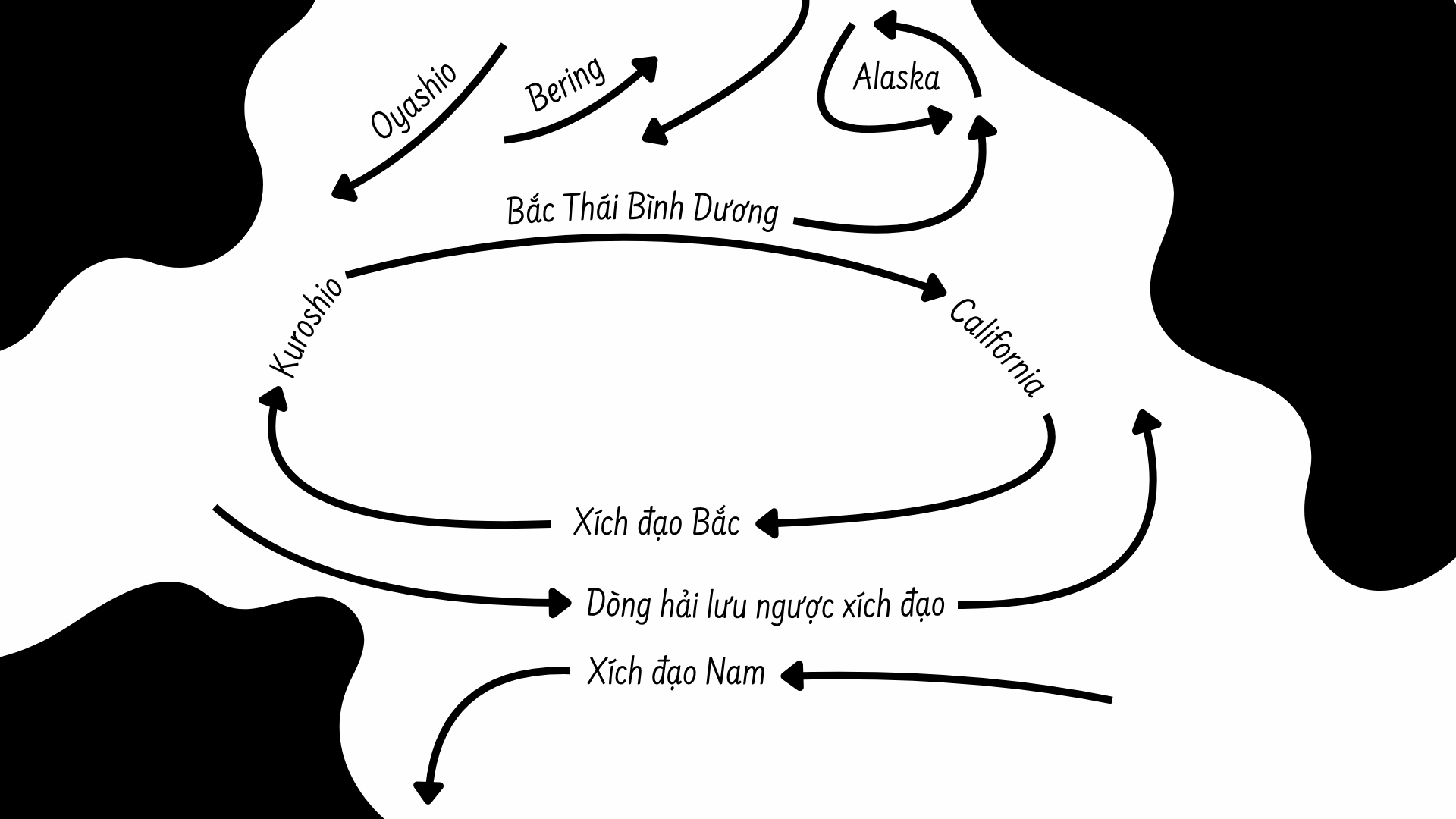 Chúng ta hãy bắt đầu với một phân tử nước đơn lẻ – gồm một nguyên tử oxy và hai nguyên tử hydro đã tồn tại trong hàng tỷ năm. Phân tử này bắt đầu hành trình của nó ở vùng biển Thái Bình Dương rộng lớn – một nơi “đông dân” nhất trên Trái Đất. Ban đầu, một dòng nước lạnh bên trong đại dương, Dòng hải lưu lạnh California, đã “quét” các phân tử này đi từ Alaska về phía nam dọc theo bờ biển California đến Baja và vùng xích đạo. Tại đây, các phân tử nước bắt đầu được làm nóng và dâng lên gần bề mặt đại dương, bắt đầu hành trình di chuyển theo chiều kim đồng hồ quanh Bắc Thái Bình Dương nhờ vào Dòng hải lưu Xích đạo Bắc di chuyển về phía tây tới Nhật Bản, sau đó là Dòng hải lưu Bắc Thái Bình Dương hướng về phía đông để quay trở về Bắc Mỹ. Khi các phân tử nước này một lần nữa trở về California, nó bắt đầu “phơi mình” trên bề mặt đại dương tràn ngập ánh nắng và bốc hơi vào bầu khí quyển, nơi các đám mây dần dần được hình thành.